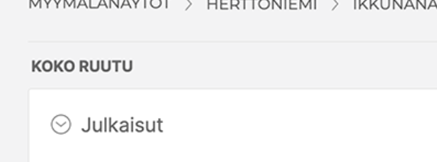 Klikkaamalla myymälänäytöt, avautuu hierarkian seuraava taso, joka on tässä tapauksessa Herttoniemi.