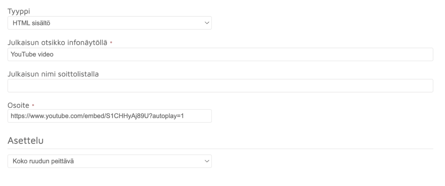 YouTube videon lisääminen infonäytöille